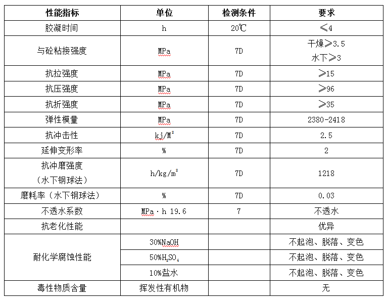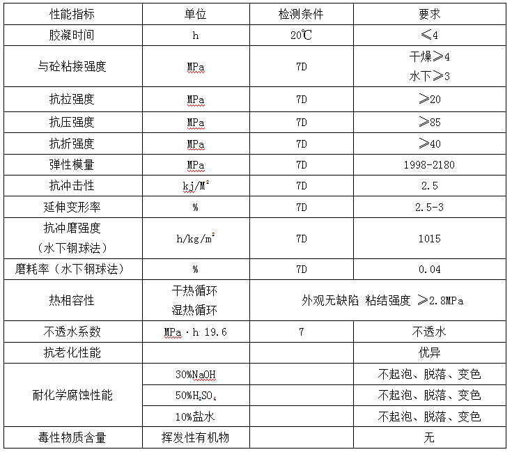 MS-1086S水下抗沖磨環(huán)氧砂漿主要力學(xué)性能指標(biāo)
