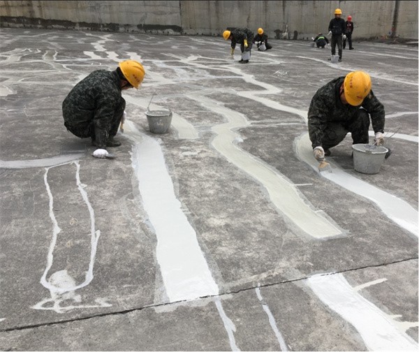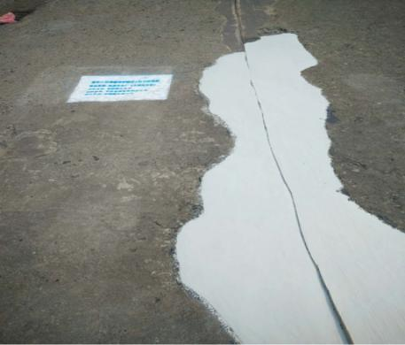 4.2 大面積施工時(shí),宜采用分塊施工法,每一施工塊可寬3m~5m,施工塊間預(yù)留30mm~50mm的間隔縫,待1d~3d面涂固化后再填補(bǔ)間隔縫。填補(bǔ)施工時(shí)要求壓實(shí)抹平,施工面要與兩邊的施工塊保持齊平,無(wú)錯(cuò)臺(tái)、無(wú)明顯接縫。