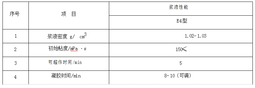 4. E4型適用于有快速固化堵漏要求的混凝土結(jié)構(gòu)和不良地質(zhì)體結(jié)構(gòu)滲漏通道的快凝堵漏。
