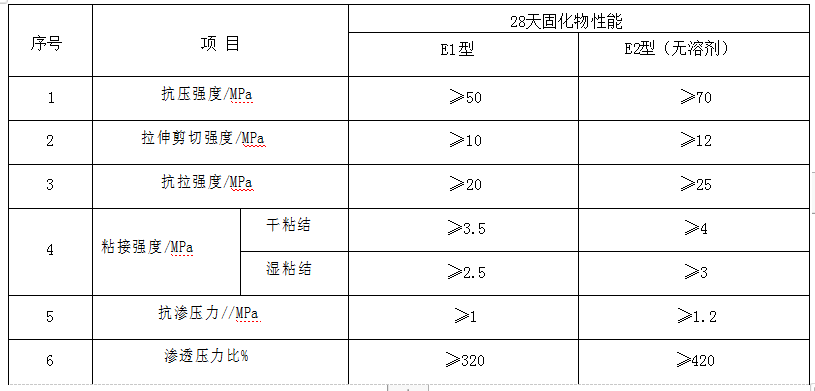 E3型 不良地址體高滲透環(huán)氧灌漿材料技術(shù)性能指標(biāo)